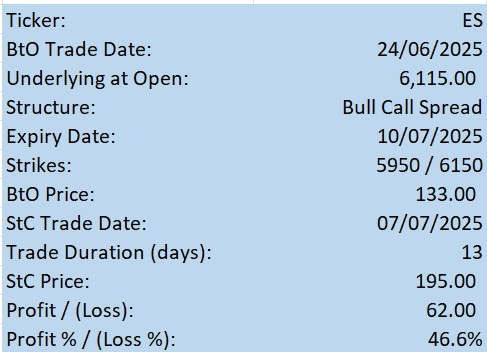 S&P 500 Bull Call Spread closes in profit