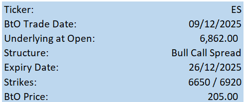 Trade #16: Bull Call Spread to capture S&P move upwards