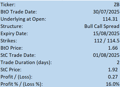 Trade #9: Treasuries Bull Call Spread closed in profit